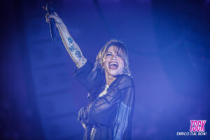 Un tappeto di pubblico riempie l’intera venue, l’età è la più disparata a significare che la Amoroso piace davvero a tutti. Dal gruppo di ragazze del liceo al gruppo di amiche in tenuta animalier.