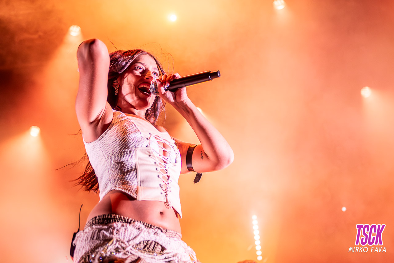 In scaletta i brani del suo ultimo album “Rosa dei venti“, uscito lo scorso marzo, oltre ai brani con cui ha partecipato al Festival di Sanremo, “Cuore amaro” nel 2021 e “Chiamo io chiami tu” nel 2025. Immancabili anche i suoi successi come “Coco Chanel“, “Chega” e “Sesso e samba“, che ha scalato le classifiche della scorsa estate in feat. con Tony Effe.