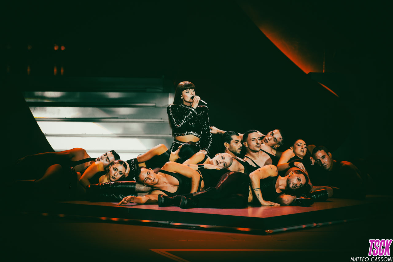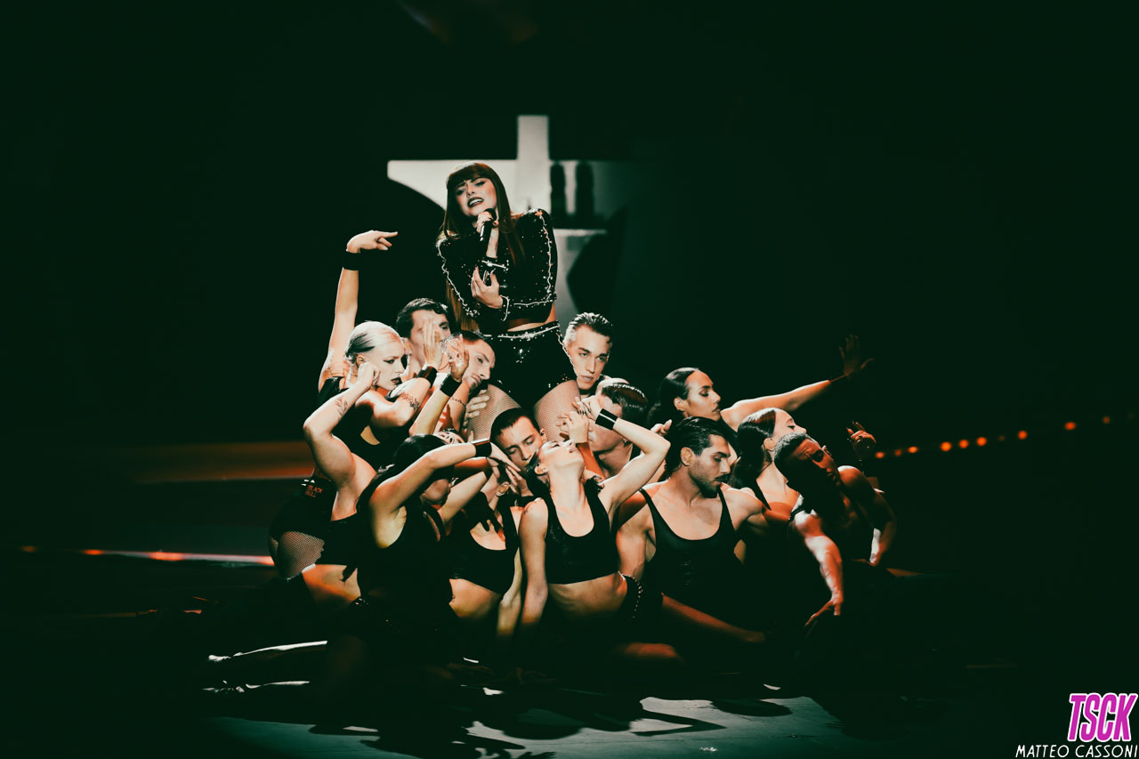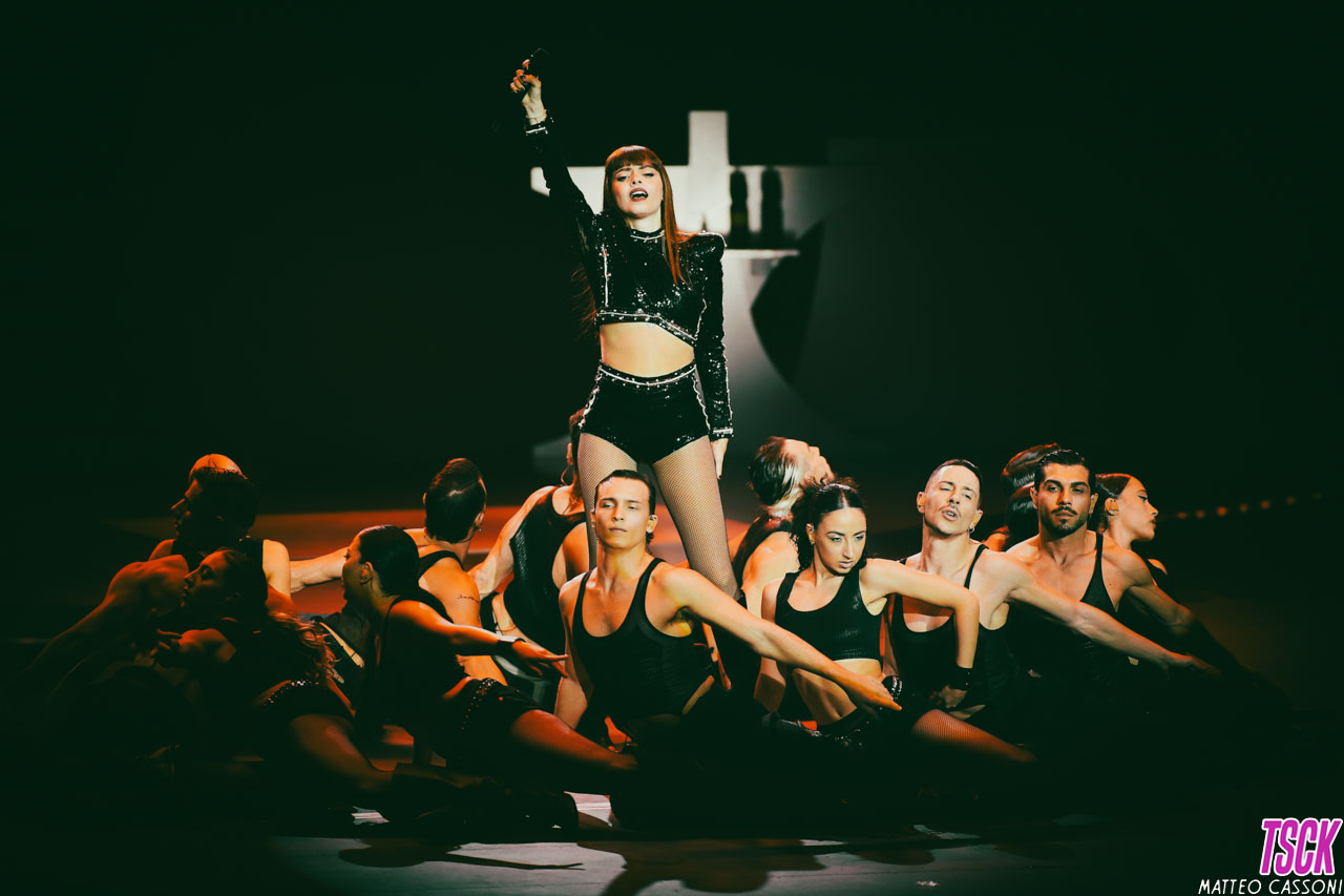La serata è stata presentata come un vero e proprio show visivo oltre che musicale: Annalisa ha aperto con “Dipende”, introducendo il concerto con scenografie ispirate al fuoco – fiamme, laser e coreografie che hanno accompagnato un set di oltre trenta brani.