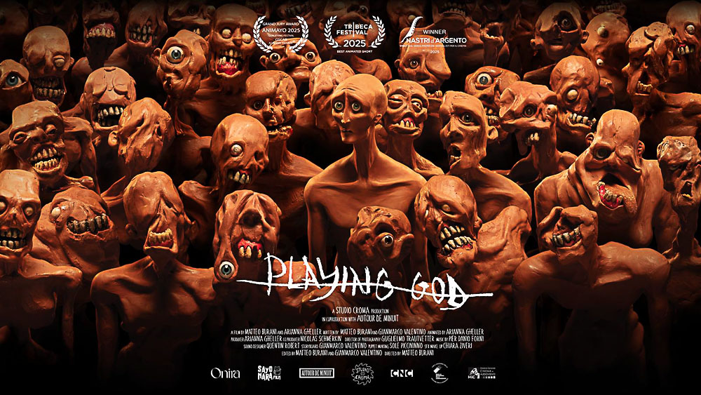 Una scelta intrapresa dopo aver dialogato con persone di tutto il mondo al termine delle proiezioni nei più importanti festival di settore, tra i quali Clermont-Ferrand, Annecy, Short Shorts (Tokyo), Indy Shorts, Animation Is Film e Palm Springs International ShortFest. Playing God è prodotto da Studio Croma Animation (Arianna Gheller, Italia), co-prodotto da Autour de Minuit (Nicolas Schmerkin, Francia) in associazione con Onira (Rodolfo L. Masedari e Filippo Schiaffino), con la partecipazione alla produzione esecutiva del due volte vincitore del Premio Oscar® Kim Magnusson, con il sostegno della Regione Emilia-Romagna attraverso l’Emilia-Romagna Film Commission e del MiC – Ministero della Cultura e del CNC – Centre National du Cinéma et de l’Image Animée.