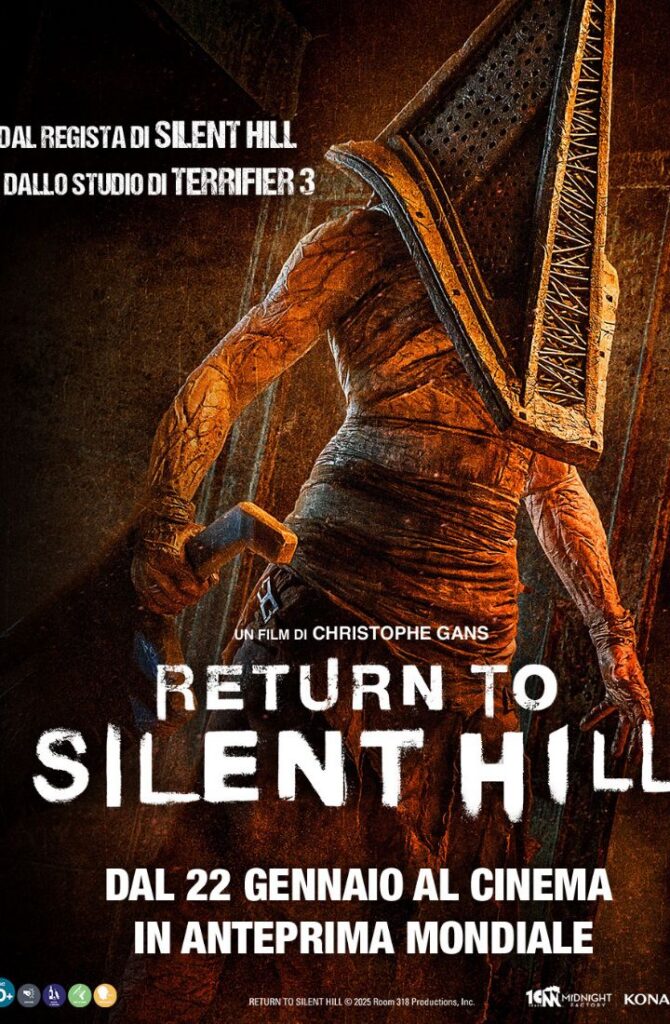 Midnight Factory, etichetta di Plaion Pictures, è lieta di svelare il poster italiano ufficiale di Return to Silent Hill, il live-action tratto dall’immortale videogioco horror Silent Hill 2, nelle sale dal 22 gennaio in anteprima mondiale. Dopo il successo del primo film, uscito nel 2006, Christophe Gans torna alla regia di questo nuovo capitolo del franchise, basato sull’acclamato videogame uscito nel 2001. A dare vita a questo nuovo attesissimo capitolo è questa volta lo studio che ha portato in sala il fenomeno mondiale Terrifier 3. Questa è una garanzia per tutti i fan dell’horror, che non resteranno delusi dalle inquietanti atmosfere e dalla resa delle creature – tra cui l’iconico Pyramid Head, dal corpo mostruoso e pronto ad affondare la sua lama come un boia – che popolano la cittadina di Silent Hill.