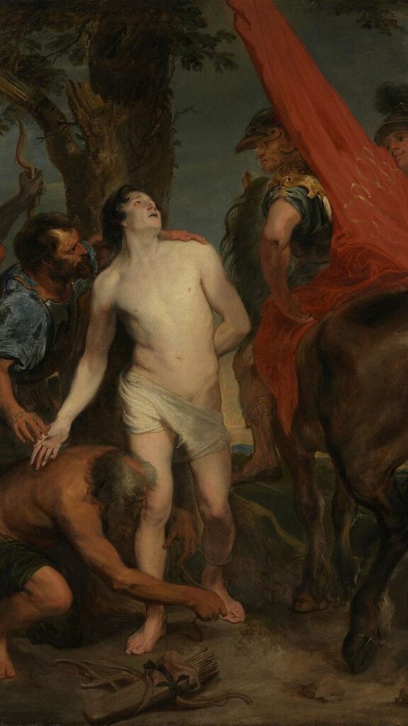 Dipinta nel 1620 circa, l’immagine mostra il santo con il volto sofferente nel momento che ritrae il suo martirio. I colori sono scuri, simili a quelli usati da Tiziano. Nonostante il tormento nel viso, il corpo appare invece relativamente muscoloso e richiama lo stile ellenistico.