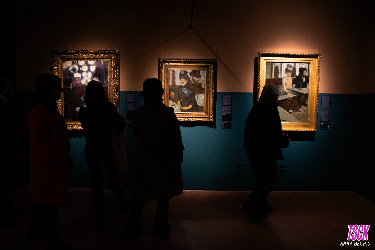 La quarta sezione esplora la vita dell’artista italiano con i suoi nuovi compagni. Incredibile qui l’accostamento tra due dipinti simili e allo stesso tempo totalmente diversi dei due pittori. Abbiamo il confronto tra il famoso quadro di Degas “Dans un Cafè” (che siamo più abituati a chiamare “La bevitrice d’assenzio“) e quello di Zandomeneghi ambientato al Caffè de la nouvelle Athènes.