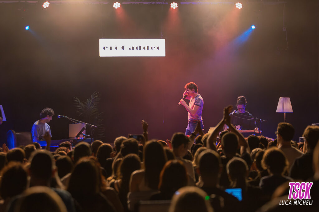 La dimensione della Santeria continua a essere un elemento chiave. La vicinanza tra artista e pubblico amplifica ogni momento: cori, mani alzate, sguardi che si incrociano e una partecipazione maggiore tra il cantate e il pubblico. EroCaddeo gestisce il palco con naturalezza, alternando momenti più intimi a passaggi energici, mantenendo sempre alta l’attenzione.
